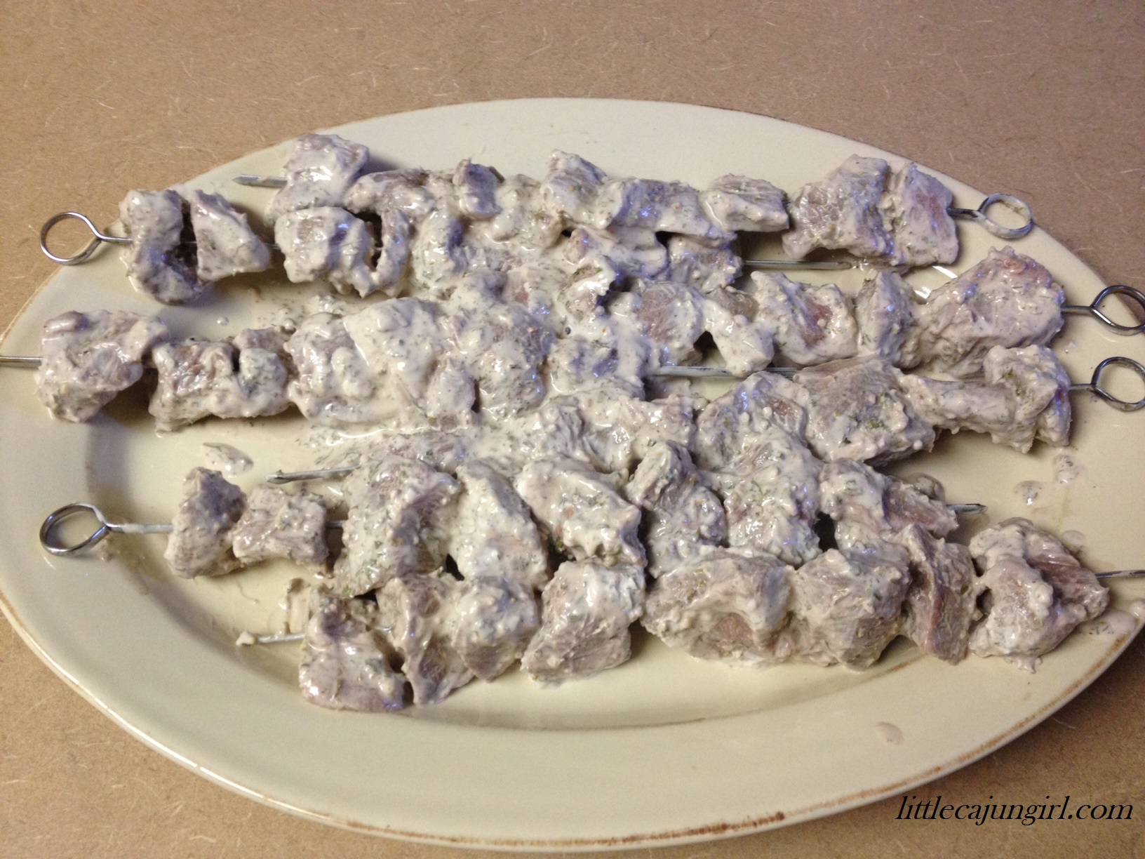 Little Cajun Girl goes Greek! This is one of those “plan ahead” meals because it needs to marinate at least 12 hours or overnight. It’s a quick marinade, so you can get supper prep done in about 5 minutes before leaving for work or right before bed.